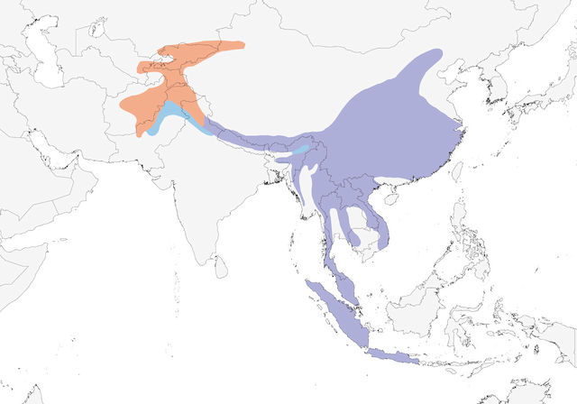 Distribution of the Blue Whistling-Thrush